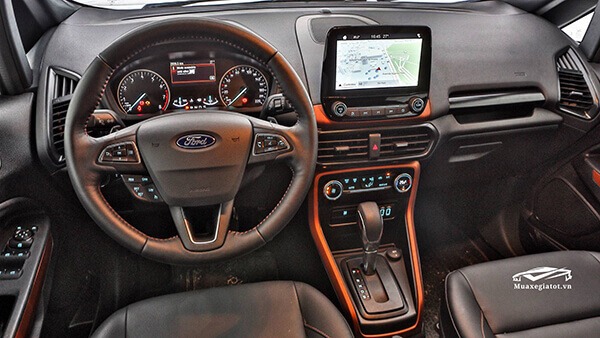 Về trọng lượng, do sử dụng hệ dẫn động 4WD nên xe Ford EcoSport 2022 Storm nặng hơn phiên bản Titanium khoảng 110 kg (243 pounds) với trọng lượng 1,469 tấn. Về trang bị, tương tự phiên bản Titanium, xe được trang bị một màn hình cảm ứng trung tâm 8-inch hỗ trợ kết nối: Android Auto/ Apple CarPlay và sử dụng hệ thống SYNC 3 mới nhất… Nội thất các ghế ngồi được bọc da đen với đường chỉ cam nổi bật, các táp-pi cửa và táp-lô trung tâm với các chi tiết màu cam thể thao.2