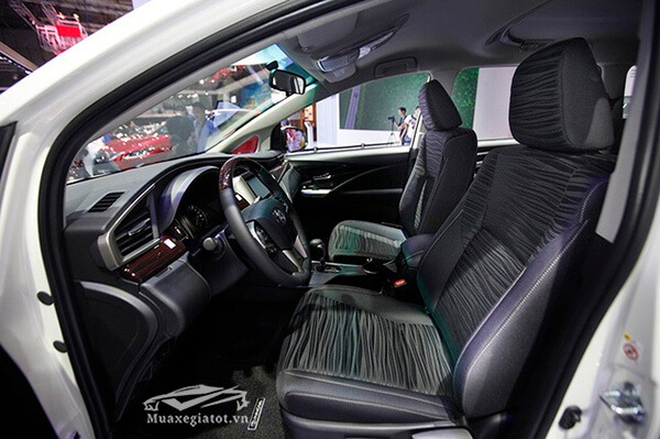 Ghế ngồi trên Innova được bọc chất liệu khá đa dạng, từ nỉ thường, nỉ cao cấp cho đến da cao cấp, tuỳ theo phiên bản mà khách hàng lựa chọn. Bản 2.0V trang bị ghế lái chỉnh điện 8 hướng, các bản còn lại chỉnh cơ 6 hướng, tương tự, hàng ghế sau của bản 2.0V cũng hiện đại hơn với loại ghế rời, chỉnh cơ 4 hướng thay vì loại gập 60:40 nguyên băng ghế trên các bán còn lại.